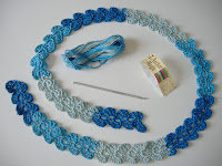 Escrito con aguja de ganchillo del no. 4 y tinta de algodon Anchor Magic.